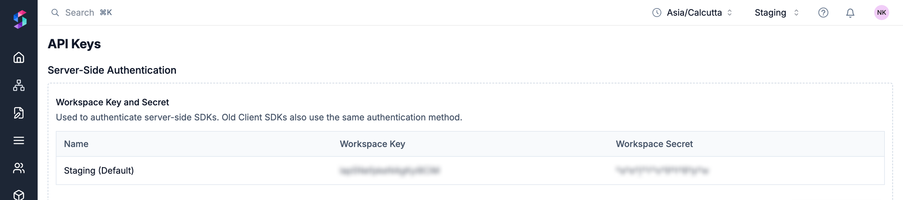 with your workspace values. You will get both the tokens from Suprsend API Keys page (Settings page -> "API Keys"