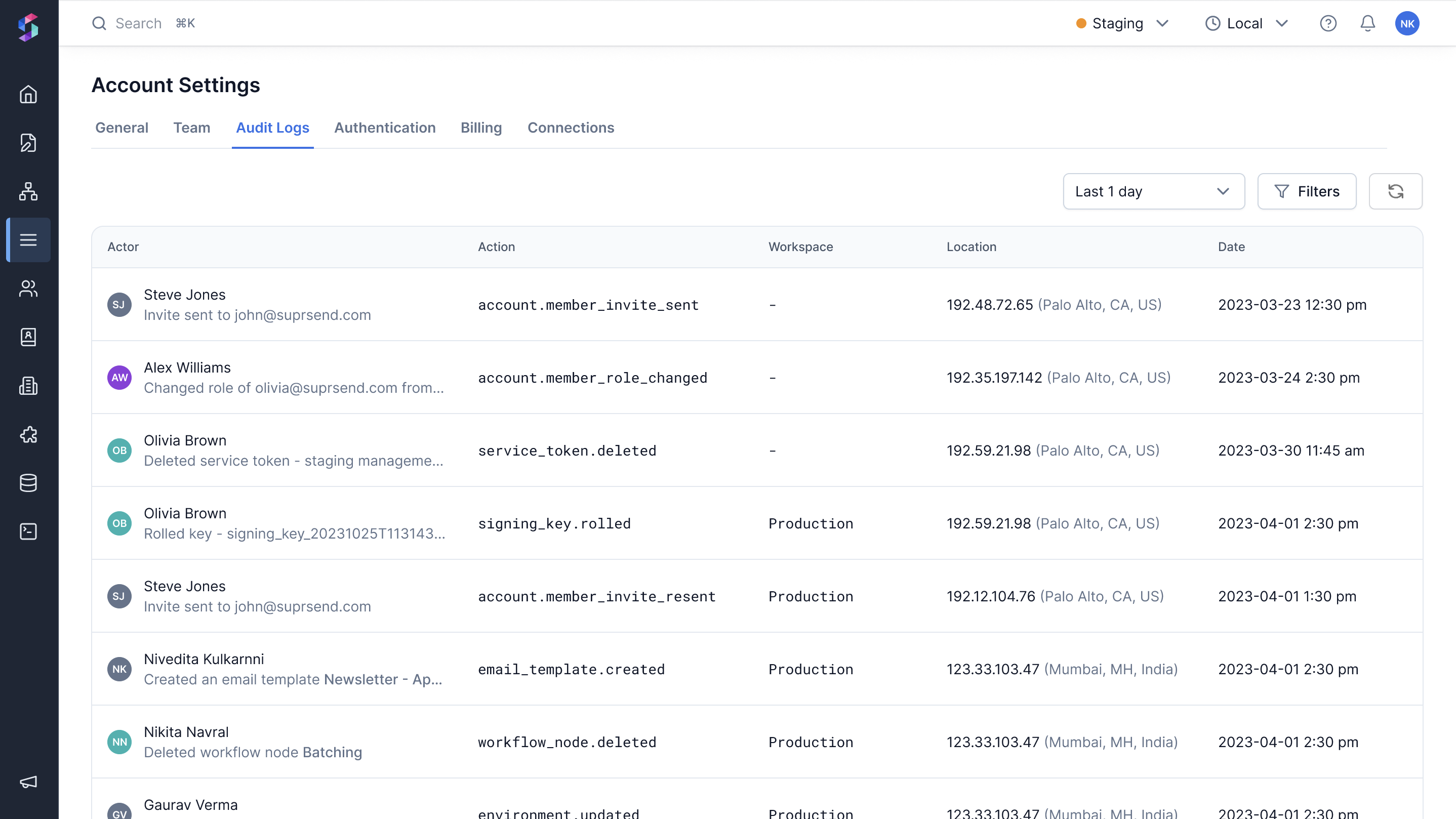 We’re continuously expanding audit log coverage to include other account level actions. If you have any suggestions or need to track other actions on priority basis, please contact the SuprSend support team.
