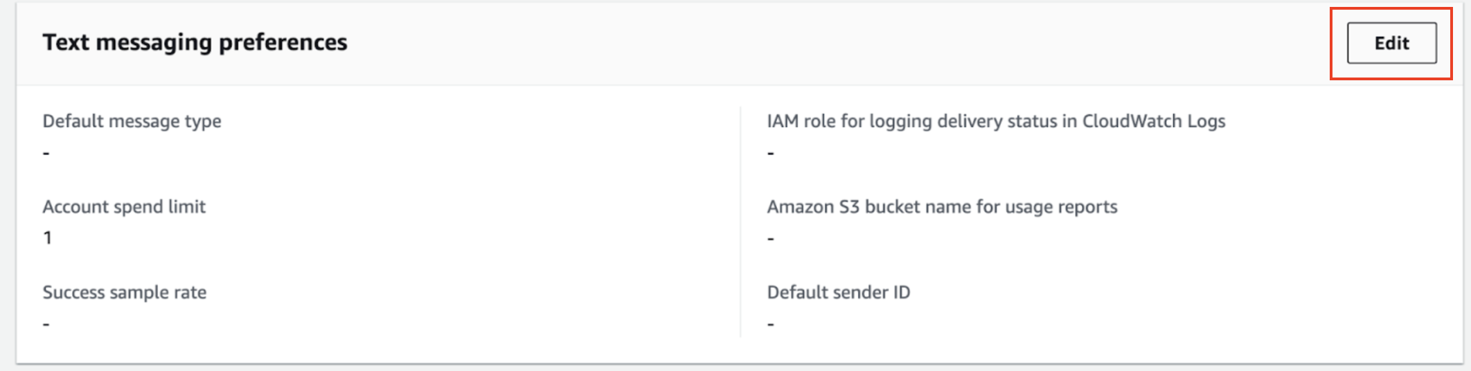 Go to Text Messaging Preferences in SNS console and click edit.