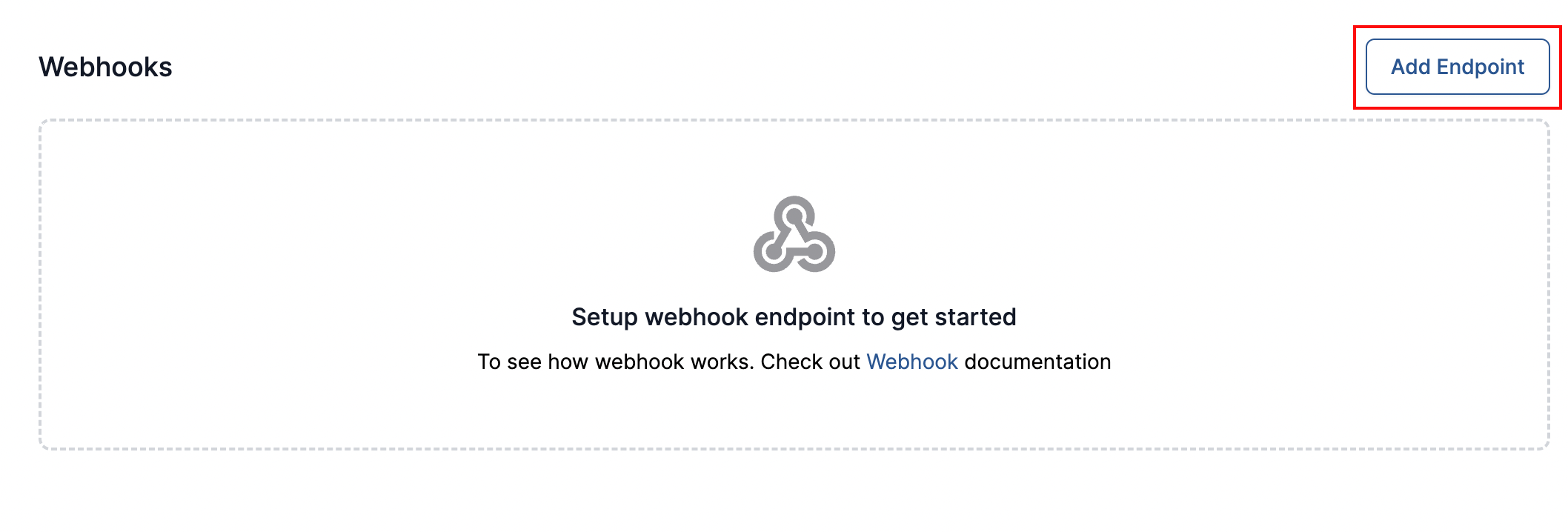 Once you have enabled webhook, you’ll see a screen like below. Click on “Add Endpoint”