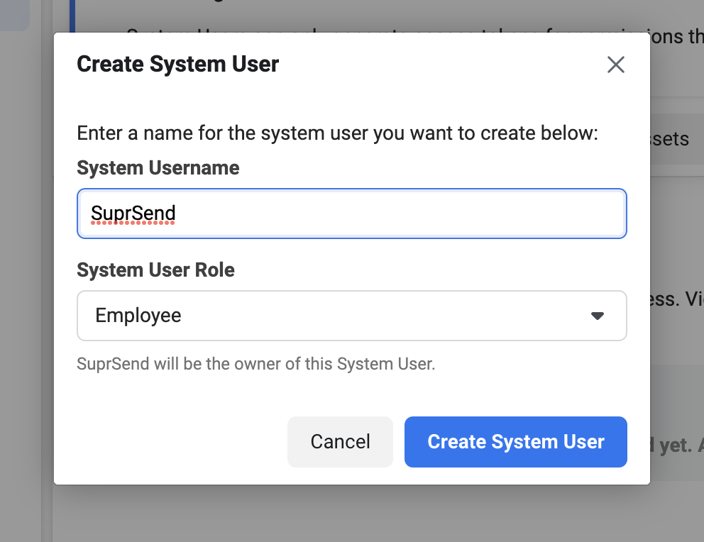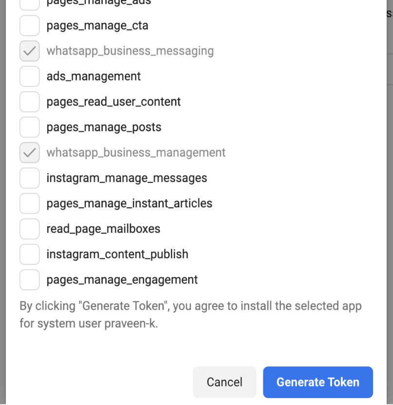 - Now, we’ll have to assign the system user to our WhatsApp account.